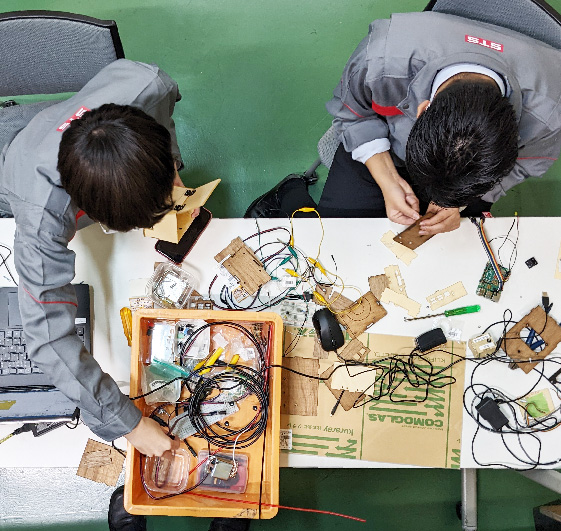 限られた時間の中で、書類が投函されたら遠地に発報する「電子かんばん」の企画から施用まで修習しながら進めます。