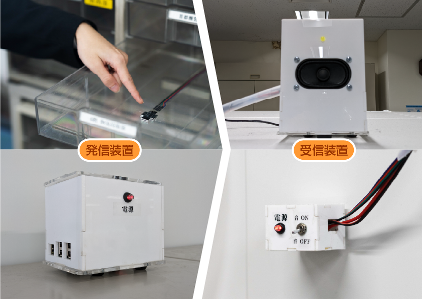 今回は赤外線センサーをレタートレイへフラットに埋め込むことでセンサー本体へのダメージを抑止。装置への配線を減らすためにセンサーで検知した信号の授受はWiFiで送受信。遠地に設置した受信機にはスピーカーとLEDが実装され、音と光で状態を通知します。