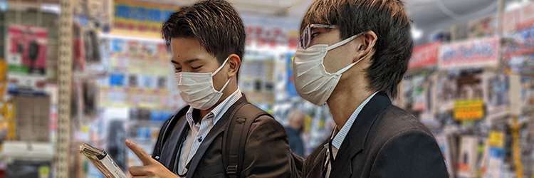 リストアップした材料を集めるため電子パーツ店に足を運び、自分たちの手でセンサーやLED部品を集めます。半導体不足の影響も少なからずあるものの、無事に部材が集まりました。