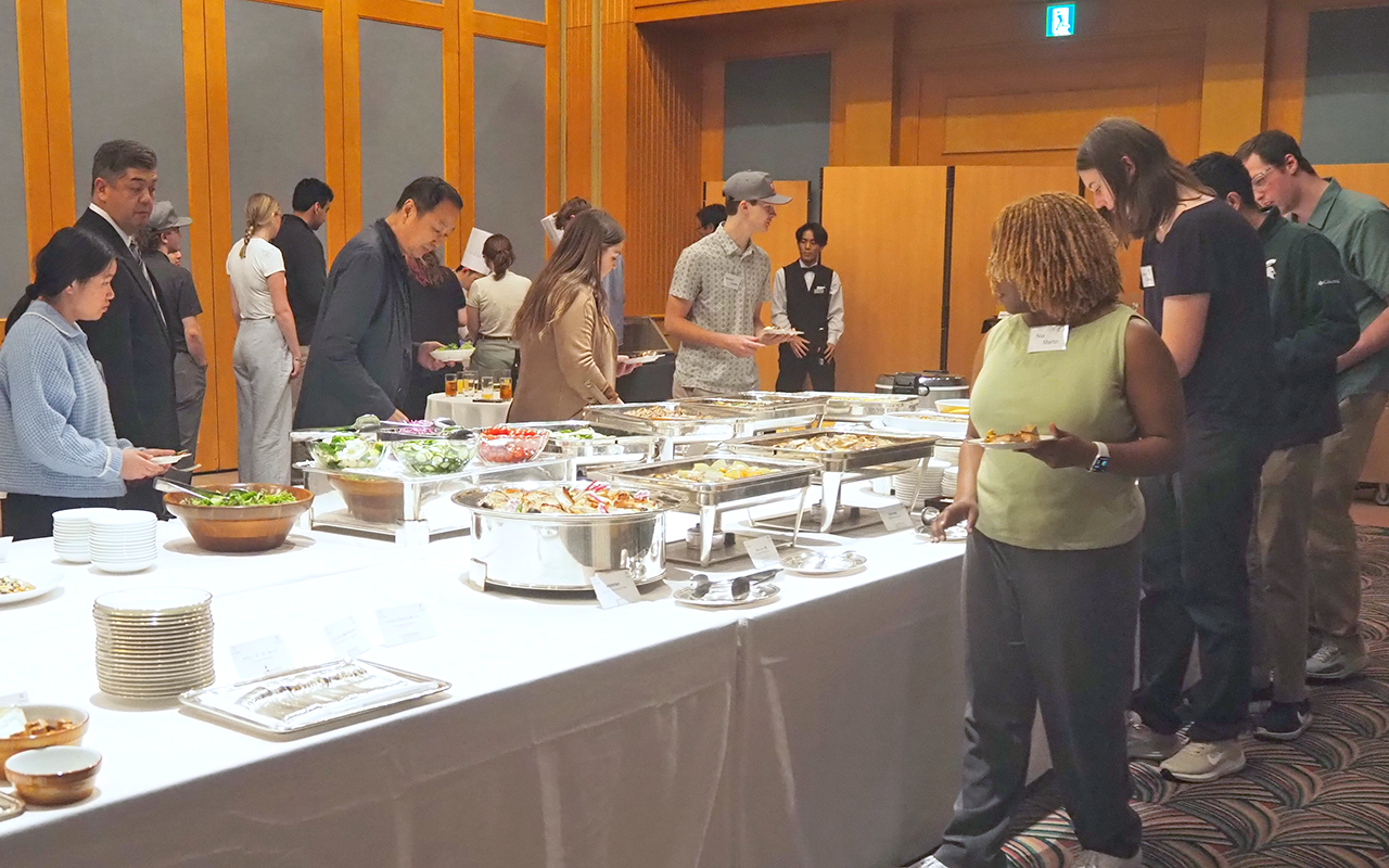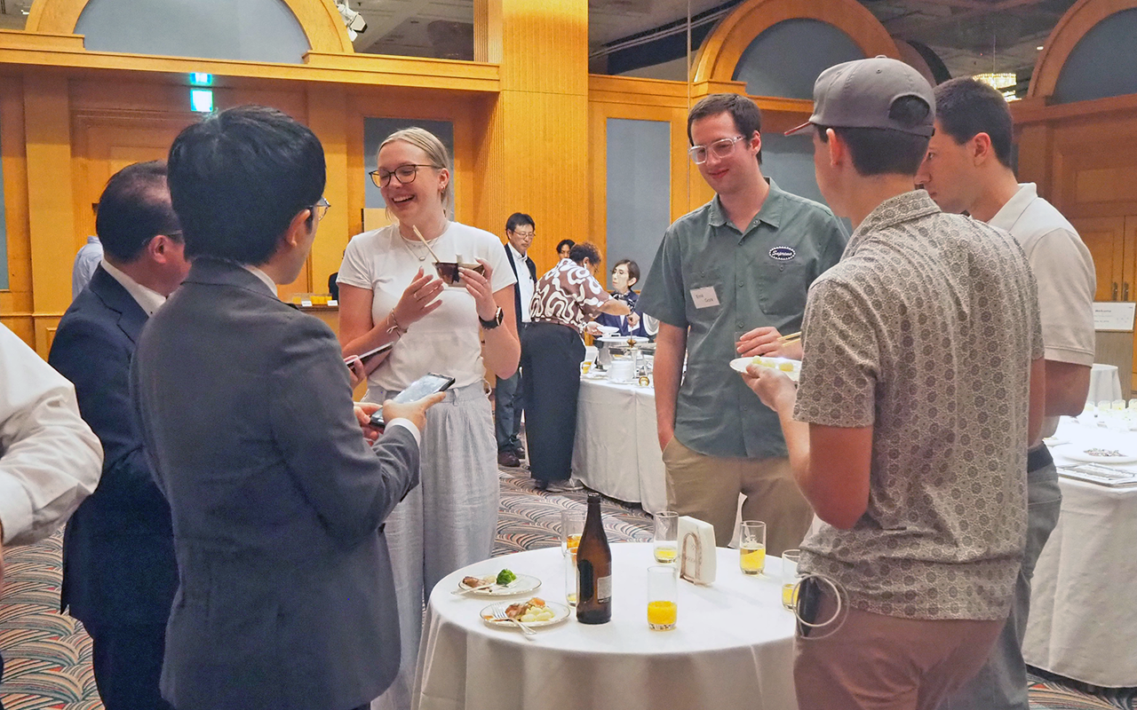 研修カリキュラムが終わり、場所を移して立食の懇親会を催しました。当社から参加しているメンバーの半数は英語ができませんが、相互で言語翻訳アプリなどを使って